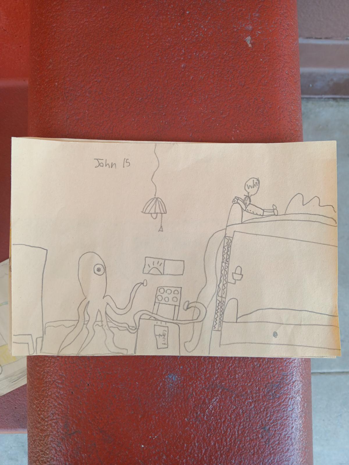 Showcasing SHA talent: John in 4th shows an octopus working on a electronic composition.