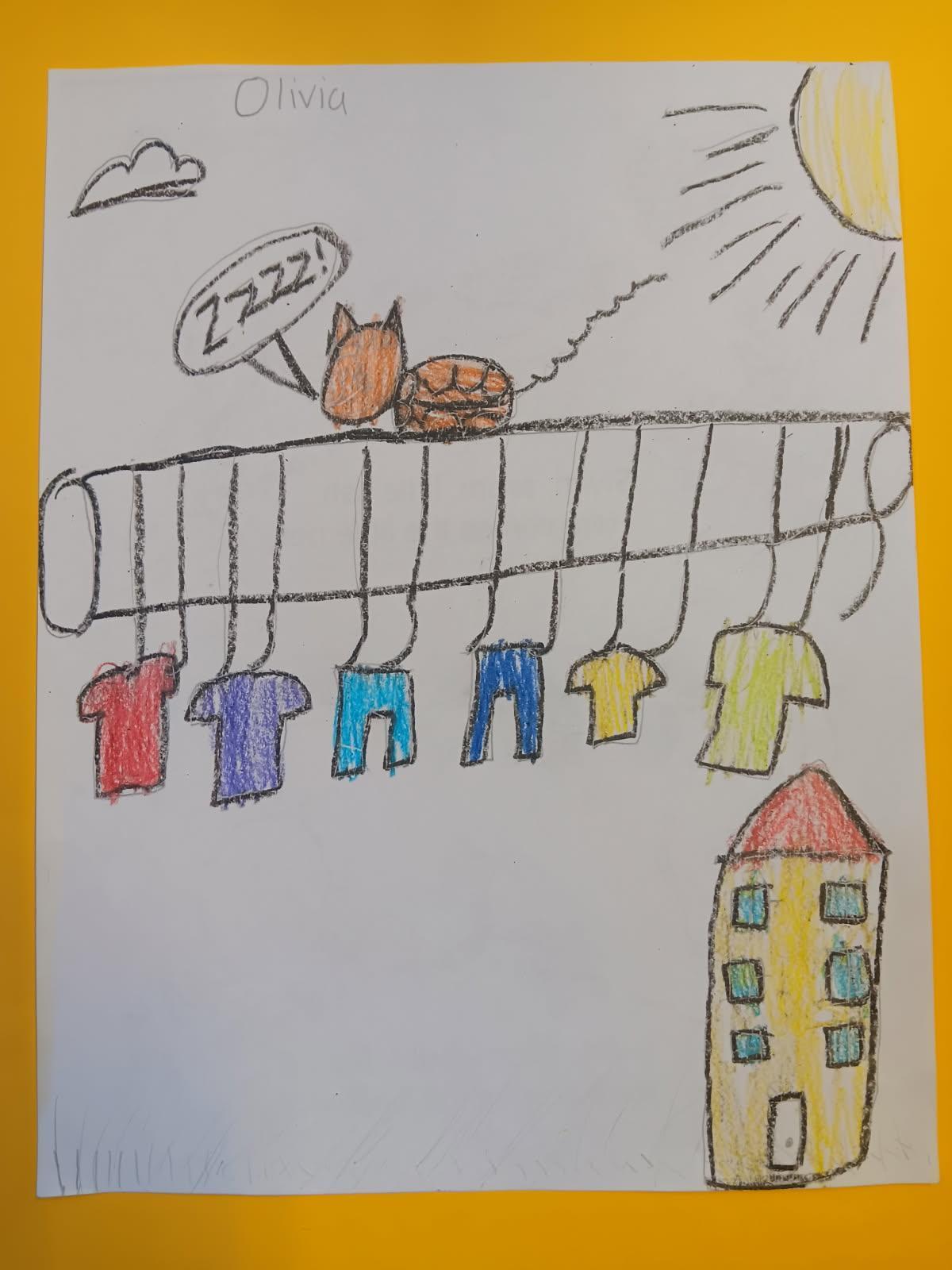 Showcasing SHA talent: This cat by Olivia in 1st is taking a snooze while she thinks of her next chess move.